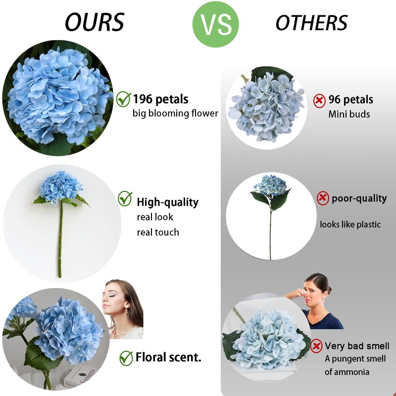 - 🏵【Require No Maintenance】 These life-like hydrangea artificial flowers can be reused. It won’t wilt, nor will they require any maintenance. We pay special attention to details when making flowers, the flower bouquets do not have any odor and will not make people feel uncomfortable.