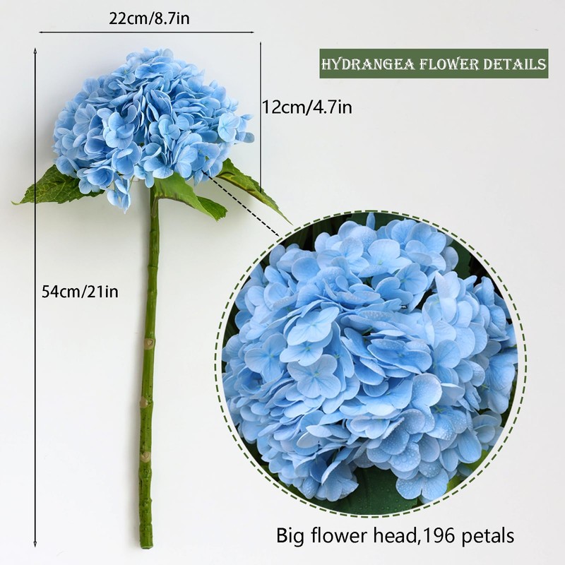 - 🏵️【Package & Size】Package:custom-made hard cardboard box.3pcs hydrangea/box.Size:Height:54cm/21in,Diameter of the flower:22cm/8.7inches.
