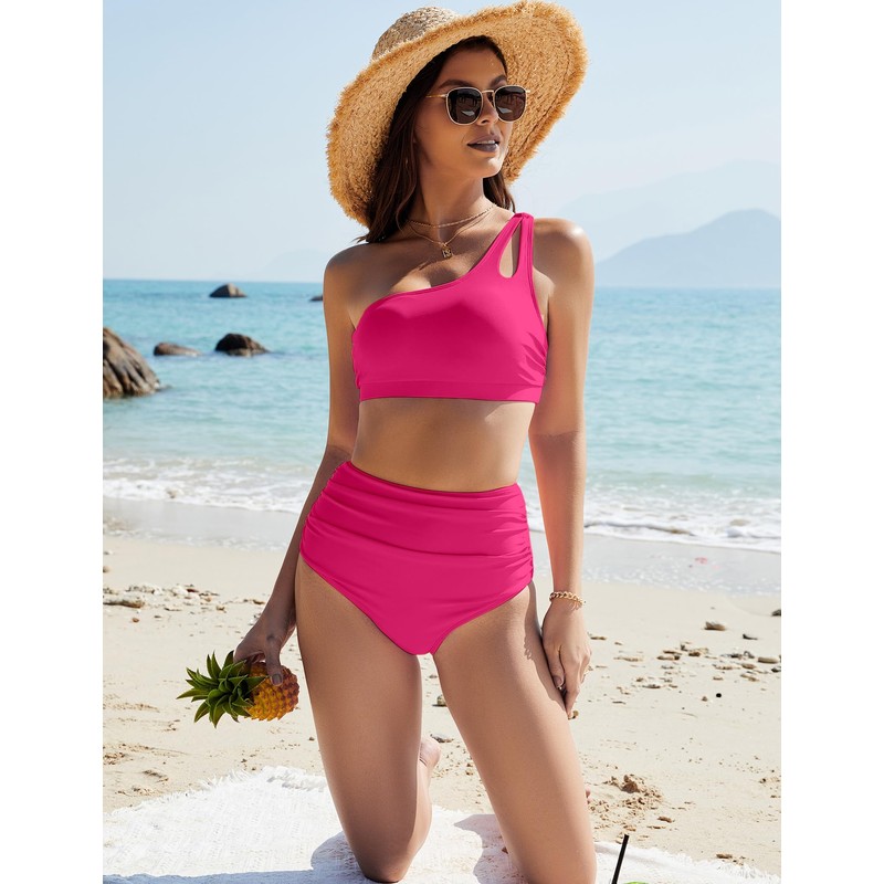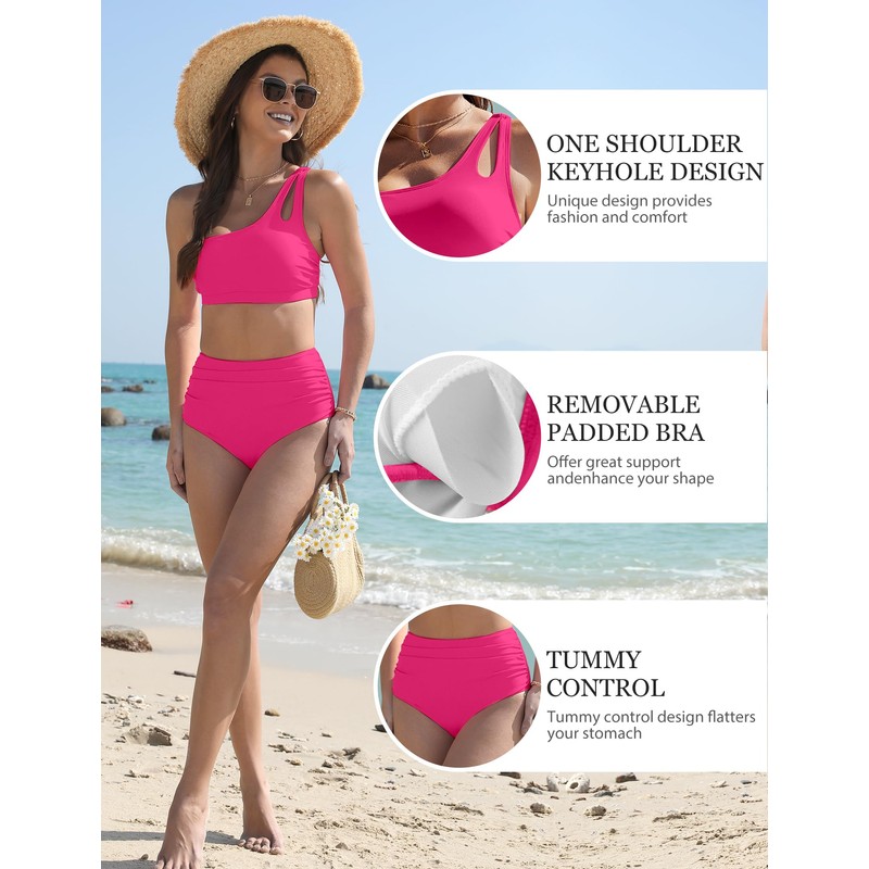 - 【Premium Fabrics】Our womens swimsuits is made of high-grade and high-quality 82% nylon and 18% spandex blend fabric, One shoulder top and high waisted tummy control bikini bottom is soft and elastic, smooth and durable, quick-drying and non-sticky sand, and skin-friendly. Our swimsuits is also designed and tailored specifically for women and teenage girls, providing you with a comfortable wearing experience, stylish dress up, and beautiful coverage all summer long.