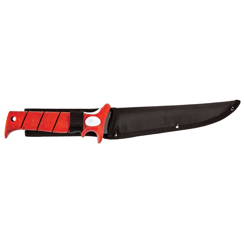- CONVENIENT: The Ti-Nitride coated, rust resistant blade cuts through scales easily and features an extra sharp tip to make starting your cut a breeze and a sheath with a belt loop for close, hands free carry