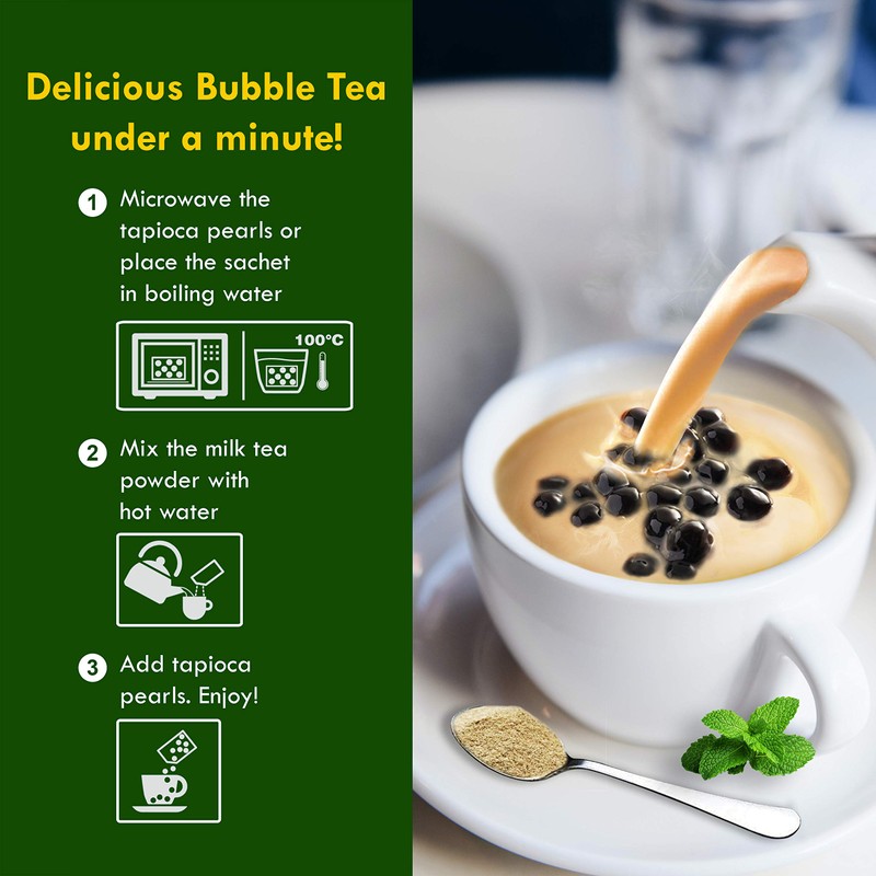 - CONVENIENT: Enjoy café-quality bubble tea anywhere. Instant tapioca pearl sachets included