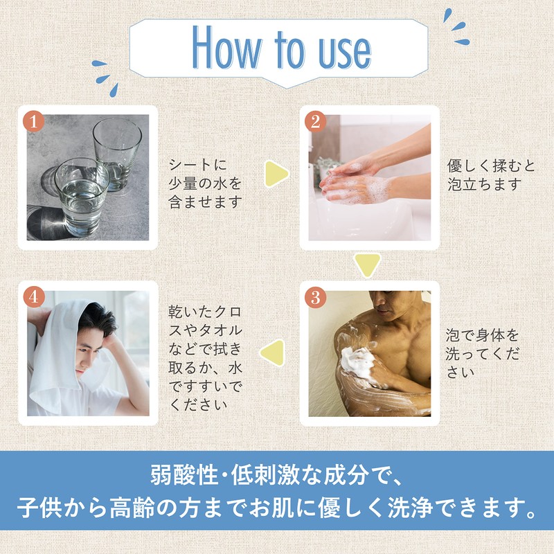 - (Thick Sheet and Gentle Texture) Soft to the touch like a casse; Made with a body shampoo, which is gentle and gentle on the skin, so it can be used safely by a wide range of people from small children to the elderly