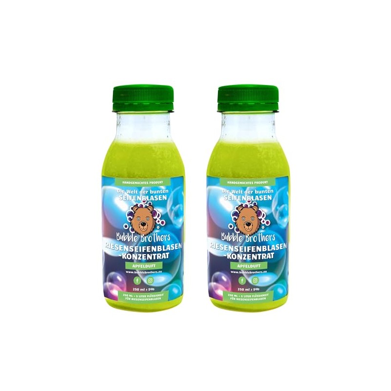 Bubble Brothers Giant Soap Bubbles Concentrate for 5 Litre Soap Bubbles Refill Bottle for Children's Birthday Large Soap Bubbles Giant Bubbles (Apple, 2 x 250 ml = 10 L)