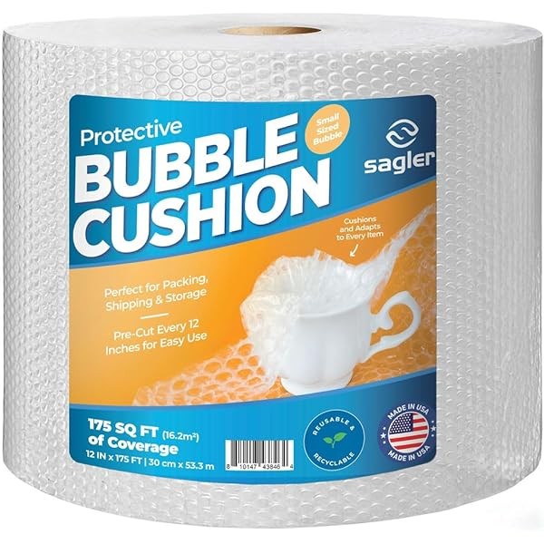 Bubble cusion for Packing & Moving - 12" Width X 175 FT - Bubble cusion for Moving, Extra Protection for Shipping, Packaging Boxes & Mailers, Perforated Every 12 IN, Clear Cushioning Wrap