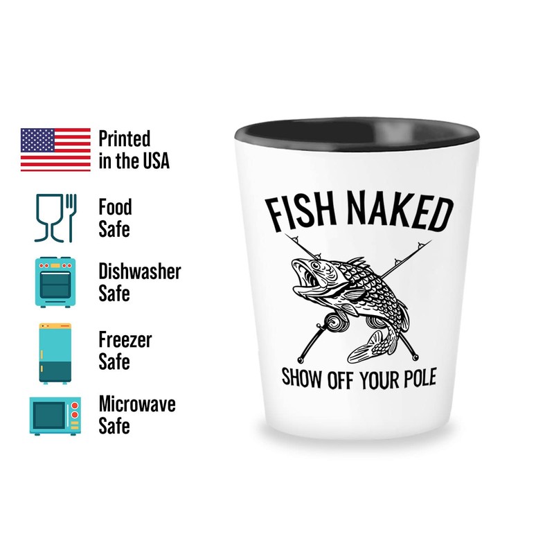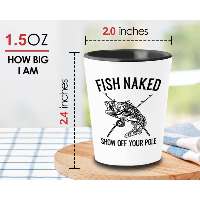 Bubble Hugs Fishing Shot Glass 1.5oz - Fish Naked Show Off - Fisherman River Aquarium Goldfish Catch Hunting Lake Catfish Arowana Father Dad