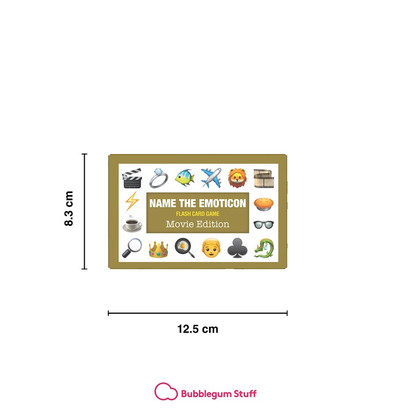 - FEATURES YOUR FAVOURITE EMOTICONS | Everyone loves emojis - that's why this fantastic smart party game offers hours of hilarious fun! A great memory game to test your knowledge of both Emoticons and movie knowledge featuring films, actors/actresses, locations and sayings. Ditch the boring old board games, it's time for your family to enter the 21st century with the Bubblegum Stuff Movie Emoticon Game!
