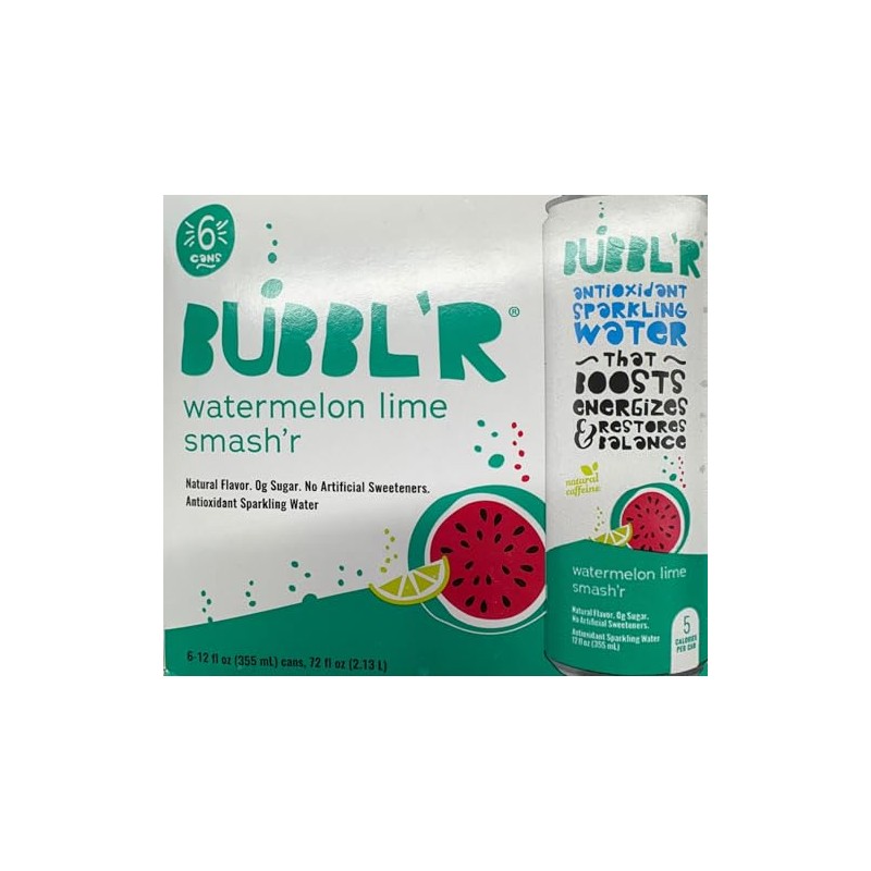 Bubblr Watermelon Lime Smashr Antioxidant Sparkling Water - 6pk/12 fl oz Can