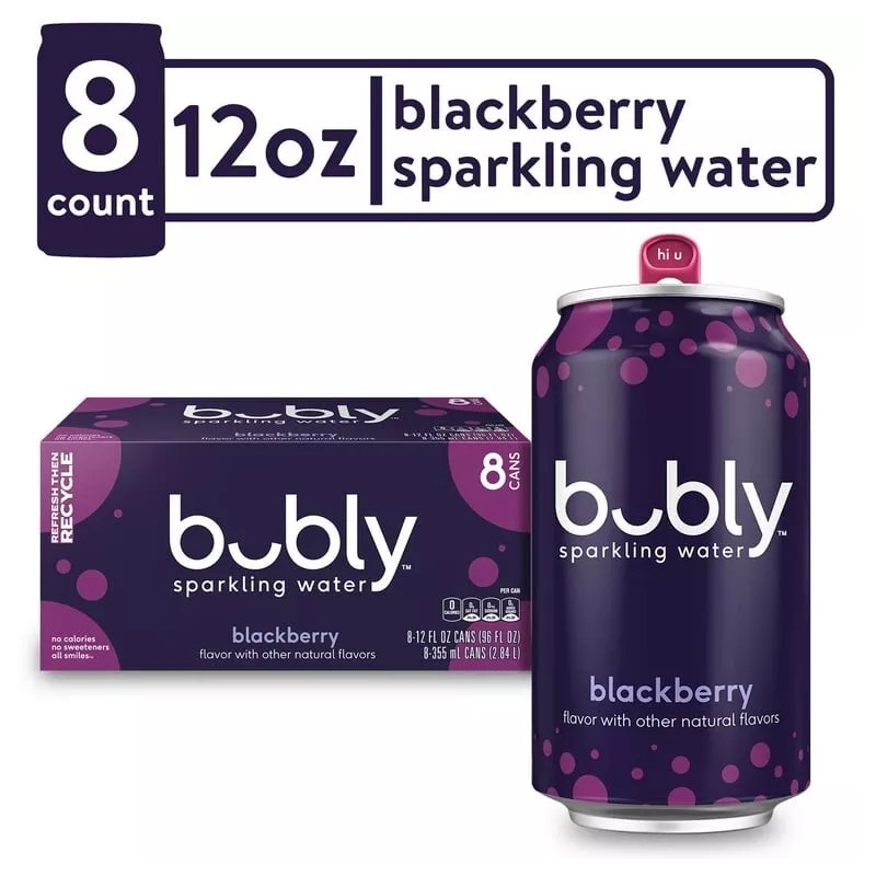 Bubly Blackberry Sparkling Water 12 fl oz, 8 Pack Cans.