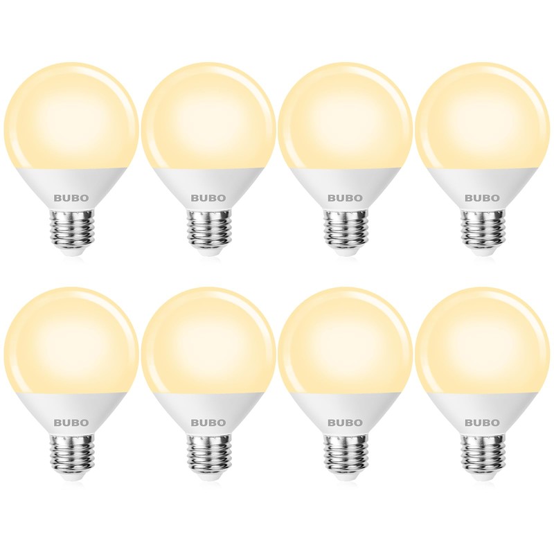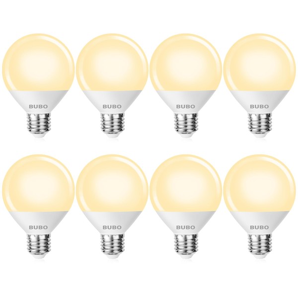 BUBO Globe Light Bulbs 60 Watt Equivalent, Vanity Light Bulbs Soft White 2700K, Bathroom Light Bulbs, Round Light Bulbs, G25 LED Light Bulbs 800 Lumens, E26 Medium Base, 7W, Non-Dimmable, 8 Pack