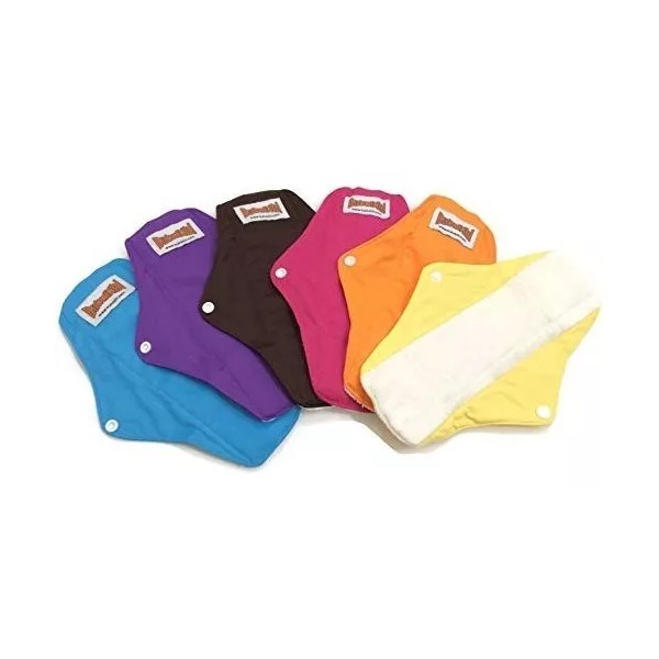 Viene con 2 capas de TPU material impermeable para el respaldo. Consta de 4 capas + TPU; Perfecto para medianas / día de caudal pesados ¿¿y hasta algunas noches; Viene con alas que tiene broches de presión para asegurar estancias de tela de mama que .; De forma perfecta como una almohadilla regulares y no voluminosos; Tamaño (Largo - 10" x ancho (con exclusión de las alas) de 2,5" ) Color: Mezcla (Cualquier 4 de los 6 colores)