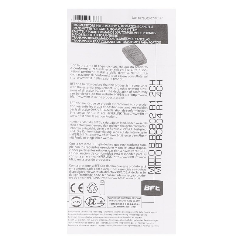 - Strong Compatibility: This BFT MITTO 2 remote control is compatible with all BFT rolling series, featuring two buttons for seamless integration with garage and electric doors.
