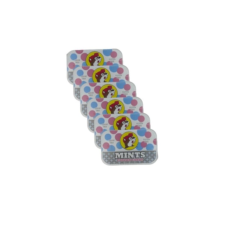 Buc-ee's Fresh Breath Mints – Sugar-Free, Gluten-Free, Long-Lasting Breath Freshener, Strong Mouth Watering Mints for Dry Mouth, Travel Size Tin Can - 50 Flavored Candy Mints (Cotton Candy, Pack of 6)