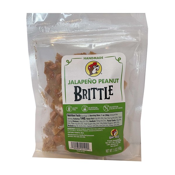 Introducing Buc-ee’s Peanut Brittle Candy, a timeless peanut candy that combines the perfect balance of crunch, sweetness, and buttery richness. Handmade in small batches with gourmet nuts, real butter, and a golden caramelized sugar blend, this old-fashioned treat delivers a satisfying snap with every bite. Each batch is carefully crafted to bring out the best flavors in our brittle, offering a delicious taste of tradition. With four irresistible flavors, there’s something for every brittle lover. The classic Peanut Brittle is packed with roasted peanuts and a rich, buttery crunch, while Pecan Brittle delivers a deeper, nuttier flavor inspired by Southern traditions. For those who love a bold twist, Jalapeño Peanut Brittle adds a fiery kick that perfectly complements the sweetness. If you're craving something unique, Coconut Peanut Brittle blends crunchy peanuts with tropical coconut for a delightful combination of flavors. Perfect for any occasion, Buc-ee’s brittle makes a wonderful addition to a peanut brittle gift basket, offering a nostalgic treat that candy lovers of all ages will appreciate. Whether you’re celebrating the holidays, looking for a thoughtful birthday gift, or simply indulging in a classic snack, this brittle pairs beautifully with chocolates, caramel candies, and other gourmet treats. Its homemade taste and crispy texture bring a touch of Texas tradition to every bite. Packaged in a 5 oz resealable bag, Buc-ee’s Peanut Brittle stays fresh and crunchy, making it a great snack for home, the office, road trips, or parties. Enjoy peanut brittle bites as a quick treat, share them with friends and family, or keep them handy for when a sweet craving strikes. Experience the irresistible crunch of gourmet nuts in a sweet, buttery brittle that captures the heart of Texas tradition!