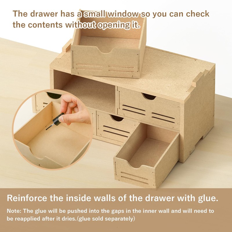 - Neat Workbench, Quick Access to Tools--The storage rack has a small window on the drawer that allows you to view the contents without opening and closing the drawer. It can be used to store volatile objects such as tweezers, glue, paint or small parts. Extremely efficient tool storage. You'll be able to work more efficiently with a clean, organized work area and the ability to quickly find the tools you need. PLEASE NOTE: Use adhesive to reinforce the inside of the drawer.