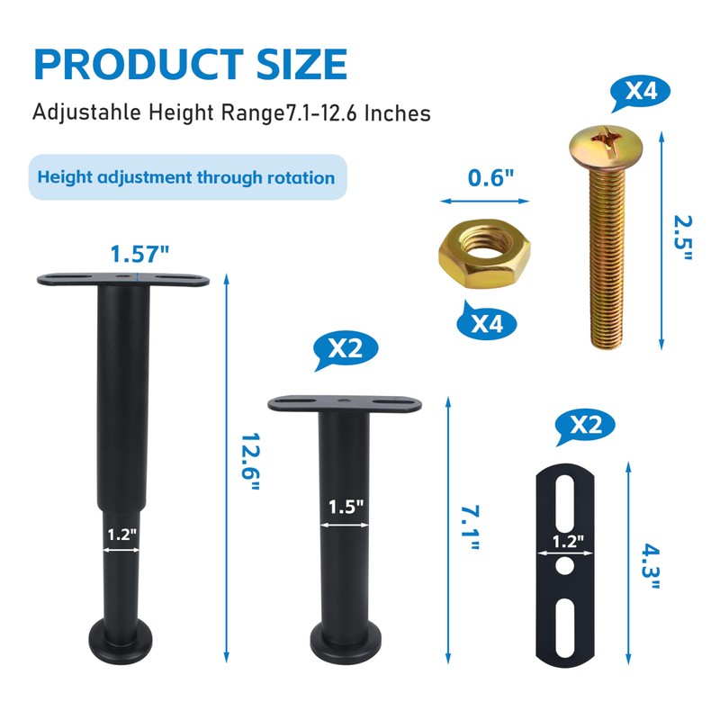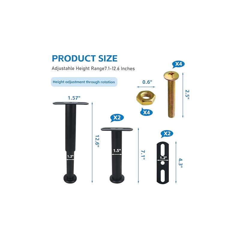 - ADJUSTABLE HEIGHT: Telescoping support legs extend from 7 inches to 12.6 inches, providing versatile height options for different bed frame needs