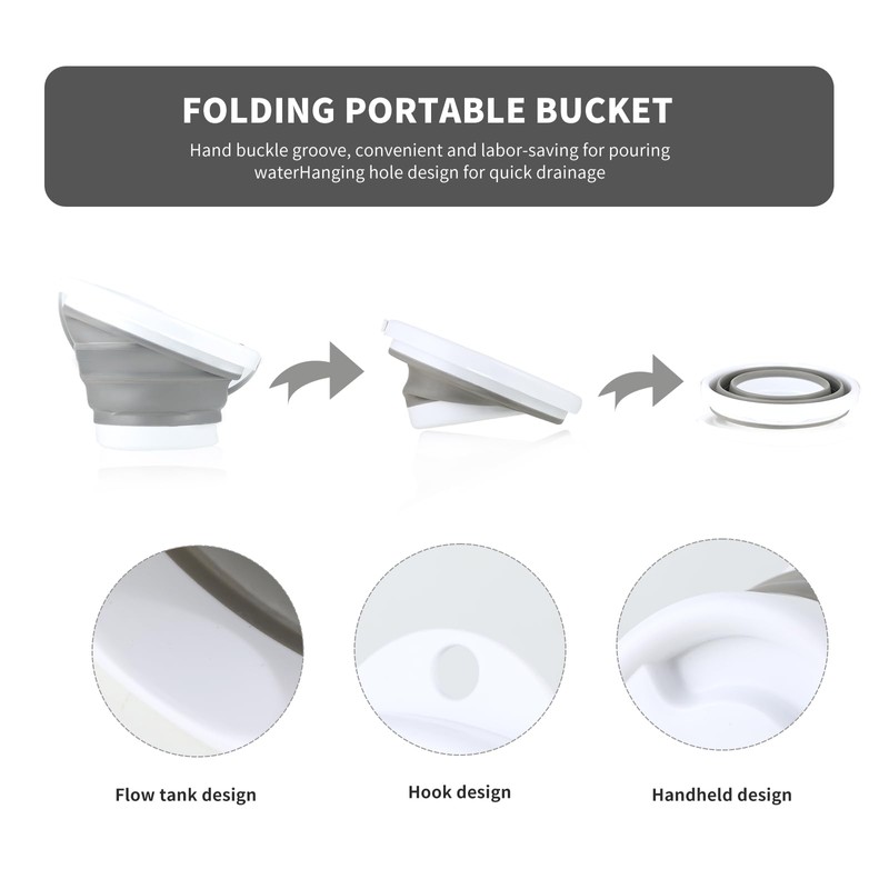 - Practical design: our foldable bucket has a practical carry handle and a hole for hanging on a hook. It is durable and easy to clean so it can dry quickly when hung up.