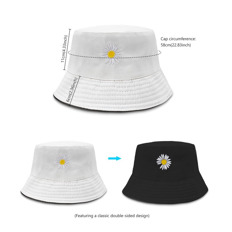 - 🌼 [Double-Side Design] Our reversible bucket sun hat features a classic reversible design with daisy embroidery on both sides. The embroidery is exquisite, and the cotton fabric is breathable, giving you a fashionable and refreshing experience in summer.