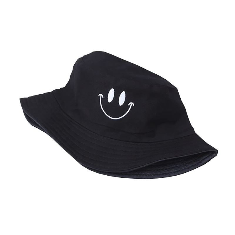 Bucket Hats Embroidered Smiley Face Hat Sunhat Fisherman Hat Beach Cap Cotton Black