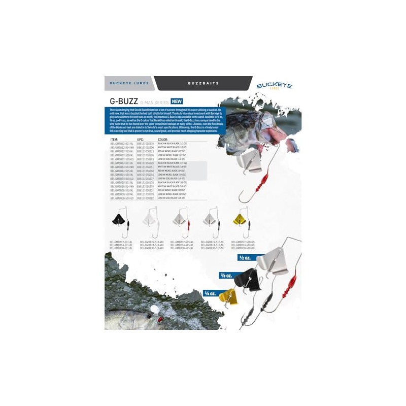 Buckeye Lures G-Buzz Bait 1/2 OZ. / Lead W/Nickel Blade