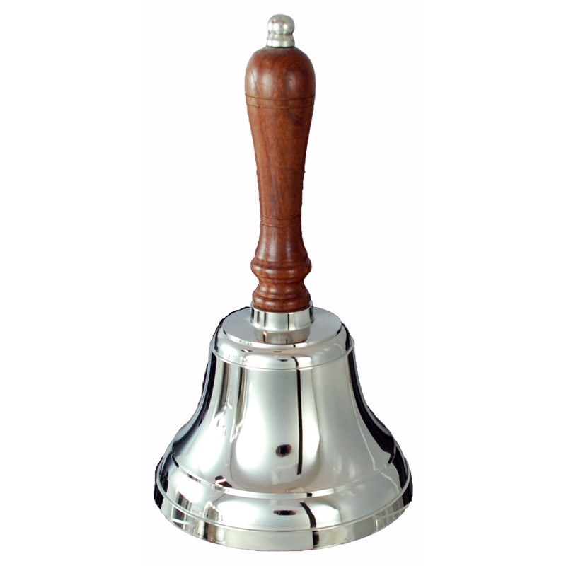 Buckingham Solid Brass Nickel Plated Hand, Dinner, Reception, School, Last Order, Library, Pub Bell-9 cm, Silver, 9 x 9 x 17.5 cm