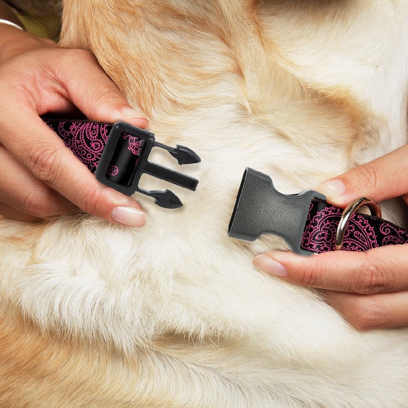 Buckle-Down 9-15" Paisley Black/Neon Pink Plastic Clip Collar, Small
