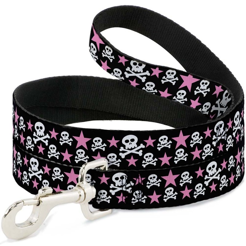 Buckle-Down Dog Leash Skulls Stars Black White Pink Available In Different Lengths And Widths For Small Medium Large Dogs and Cats, 4 Feet Long - 1/2" Wide