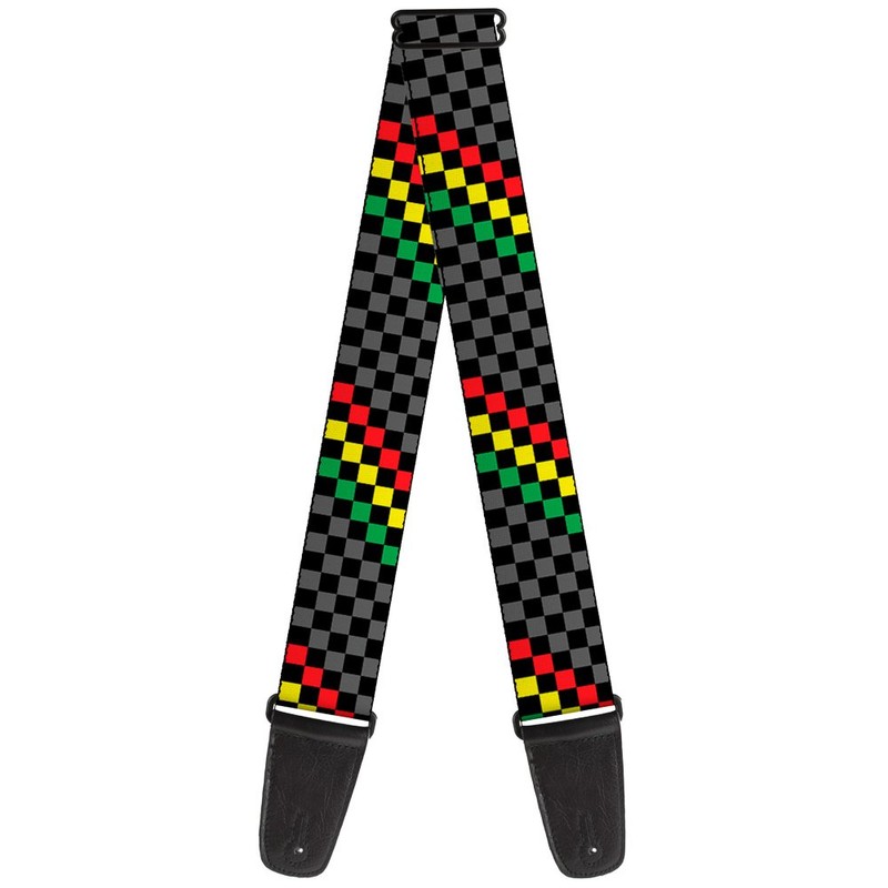 • Buckle-Down Guitar Strap - Checker Stripe Black/Gray/Rasta - 2" Wide - 29-54" Length
