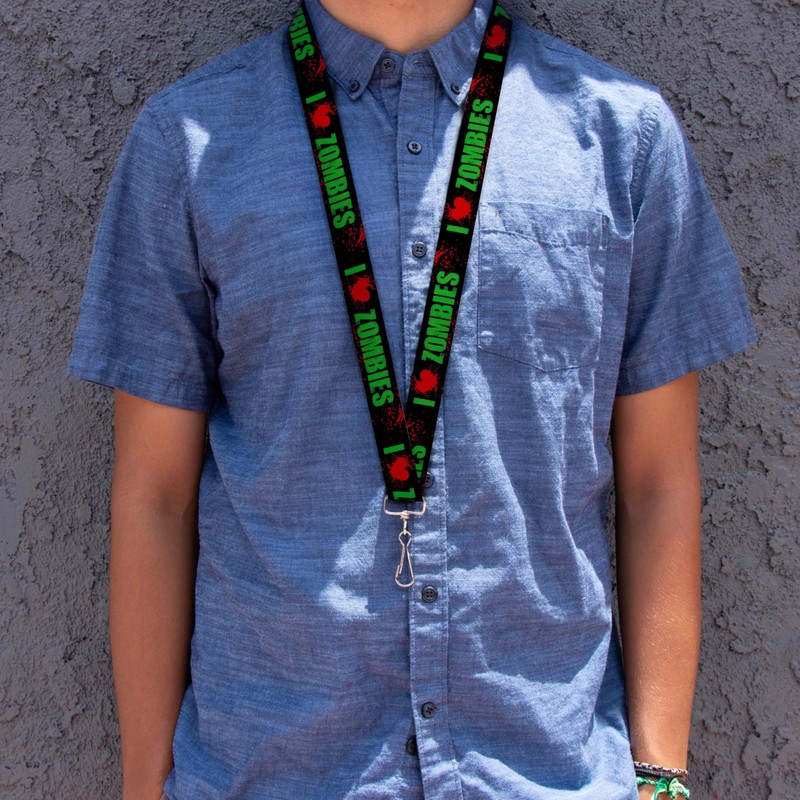 Buckle-Down Lanyard - I "HEART" ZOMBIES Black/Green/Red Splatter
