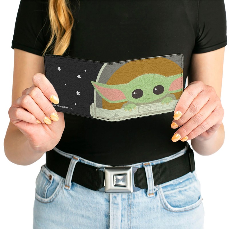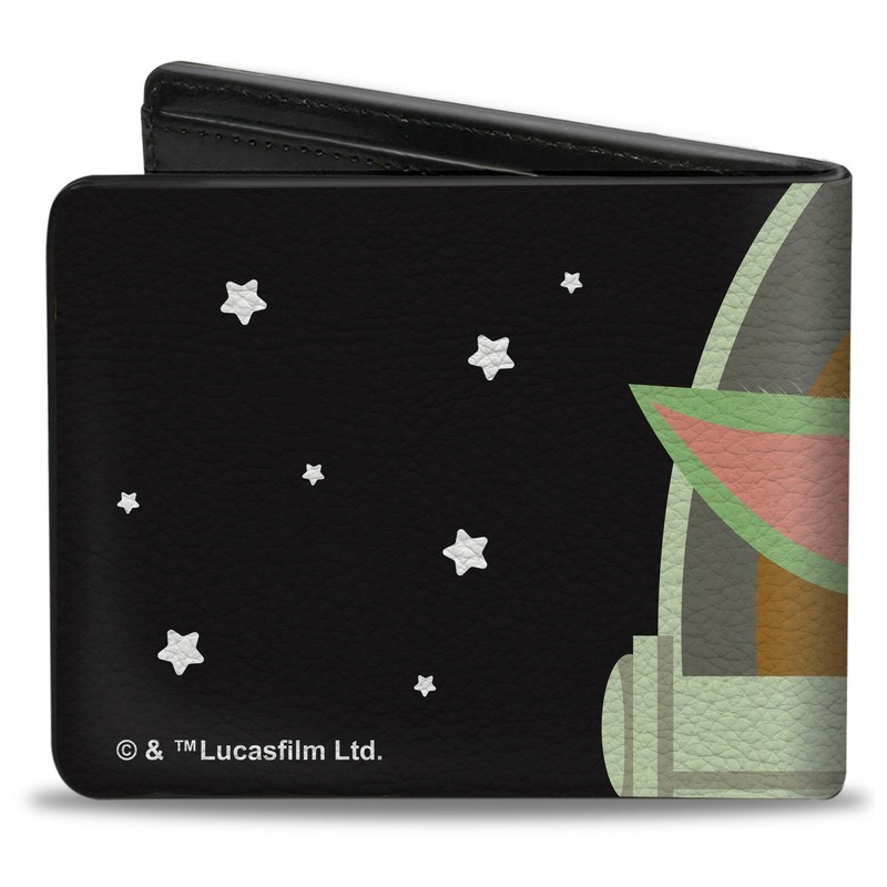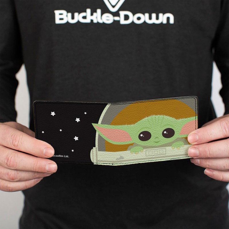Buckle-Down Men's Wallet, Bifold, Wars The Child Chibi Pod Pose Stars Black White, Vegan Leather, 4.0" x 3.5"