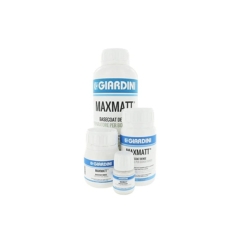 Made in Italy, the Giardini MAXMATT Basecoat Dense is what says it is, a basecoat, the first coat on the leather edge used to prep for the next layer of colored edge paint such as the Basic Edge Paint, Fluorescent, or Metallic. The Basecoat dense makes for a stronger adhesion both between the leather and the basecoat dense, and then the basecoat dense to the colored edge paint. Due to its denser characteristics, it also helps to fill in the uneven surface of the leather edge for a smoother layer. This is especially true when you have combined two layers of leather together, as the basecoat dense will make the gap between the two layers invisible.