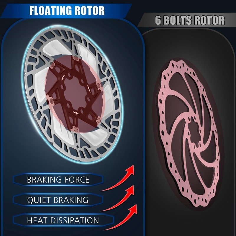 - High Strength Materials: The disc brake rotors are made of a combination of high-strength stainless steel and aluminum alloy materials, which are corrosion-resistant, non deformable, and lightweight