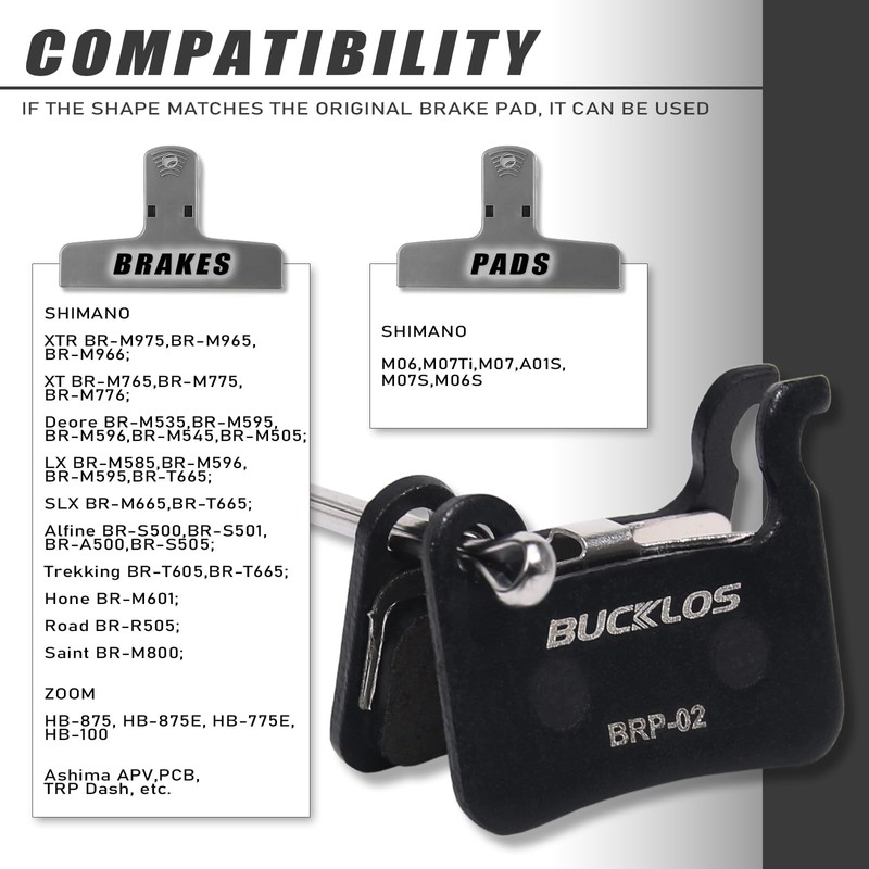 - Multiple Material: BUCKLOS bike brake pads have resin, semi-metal, multi-metal, sintered metal, copper-based, ceramic for you choose.They maintain powerful braking and are ideal for dry, humid, or other harsh weather conditions