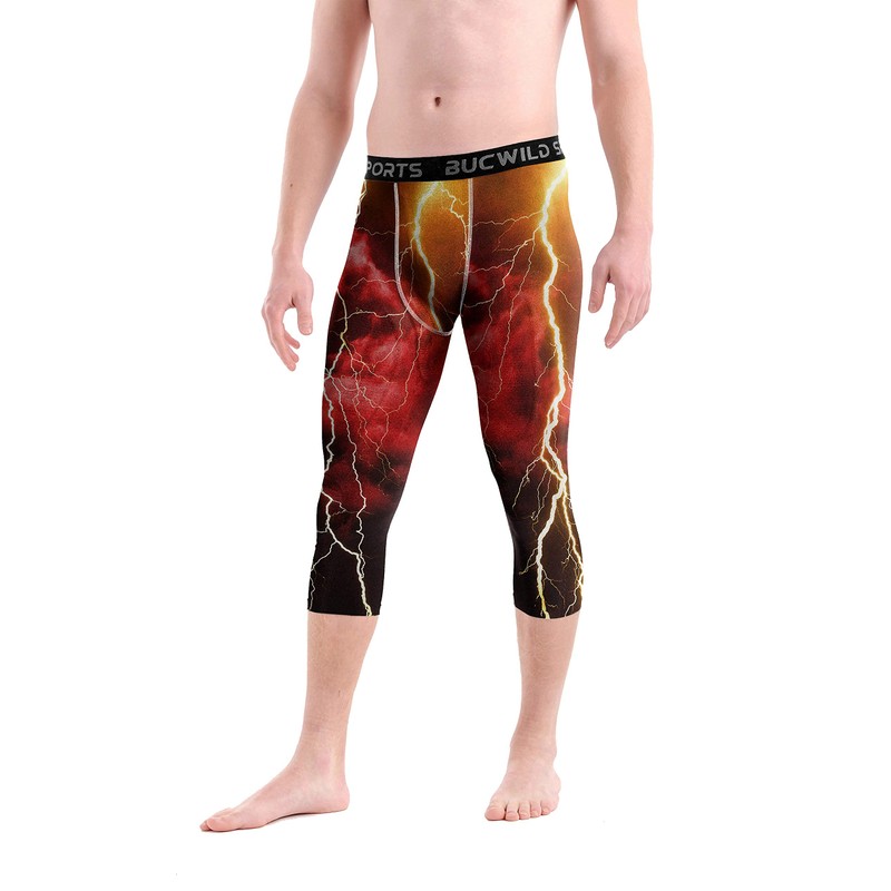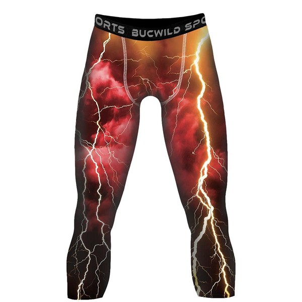 Bucwild Sports 3/4 Basketball Compression Pants Tights for Youth Boys & Men (Red Lightning, Small)