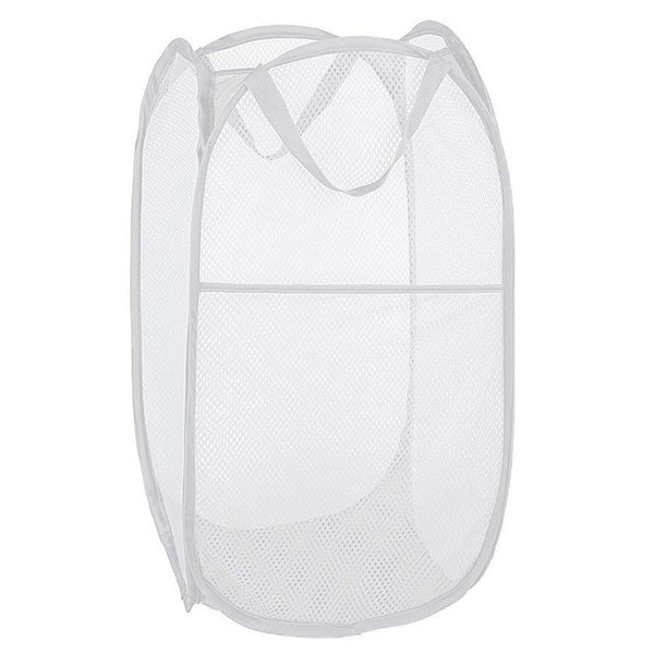 Buenod Pop up Laundry Hamper, Portable Foldable Mesh Clothes Hamper for Kids Room, College Dorm or Travel, Collapsible Laundry Basket for Storage, White
