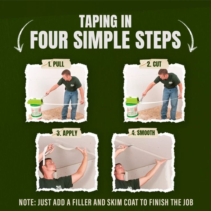 - DRYWALL TAPING MADE SIMPLER & EASIER - Unlike taping drywall seams completely by hand w/ drywall mud & a taping knife, TapeBuddy drywall taping tool solves that with ONE STEP by applying mud directly to the tape. Simply pull & cut the coated drywall tape to the desired length - apply - then embed the tape with your drywall taping knife. Simple Set Up - Makes taping Easier - Drastically Reduces Overall Time, Mess, Material Waste & Excessive Sanding.