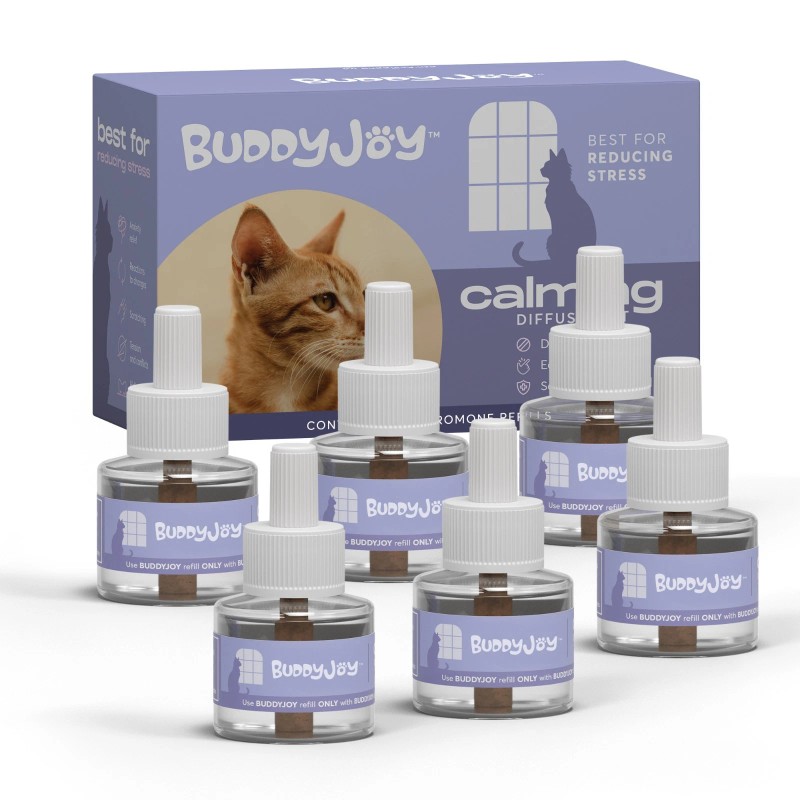 - VALUE PACK FOR CONSISTENT CALM This set includes 6 refills, offering up to 180 days of continuous calming support. Ideal for multi-cat households or long-term stress relief, this value pack ensures you’re always prepared. Keep your cats calm and content with this reliable, long-lasting calming solution from BuddyJoy.