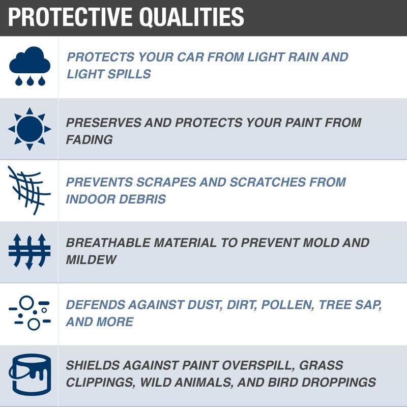 If you love your truck, you should ask yourself, "Is it really safe in the garage?" Dust, debris, tree sap, UV exposure and other environmental pollutants can scratch, fade and damage your finish, diminishing the value of your vehicle. Meanwhile, cloth or canvas covers can allow condensation to accumulate, contributing to mold mildew and moisture damage. That’s why you need to keep your car covered, even when it’s indoors. Designed for indoor use, the Duro Truck Cover is perfect for the garage and occasional outdoor protection during the fall, all at a budget friendly price. Constructed from three layers of spun-bond polypropylene and including ultrasonically welded seams, the Duro Car Cover is designed to be breathable while it protects your vehicle. This improves airflow to reduce condensation and helps prevent mold and mildew. An elasticized hem and built in grommets secures your cover all-year round. Using a cable to secure your cover using our sewn-in grommets also adds an extra level of theft protection. Includes a storage bag, antenna patch. Comes with a 5-year warranty. This truck cover will fit trucks 210" L x 60" W x 56" H. Fits vehicles like: Chevrolet Colorado, Nissan Frontier, Dodge Dakota, Ford Ranger, Chevrolet S-10.
