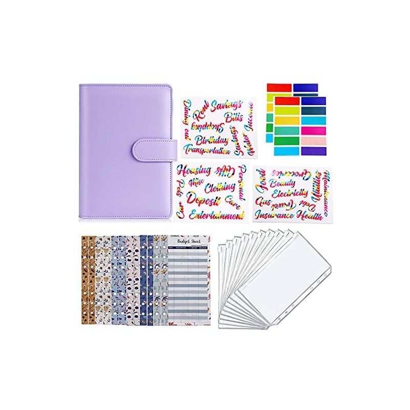 Budget Binder 28 Pcs A6 PU Leather Notebook Binder Planner Set, Personal Budget Planner Organizer 10 Cash Budget Envelopes Zipper Pockets 12 Budget Bill Planner Sheet 3 Budget Item & 2 Label Stickers