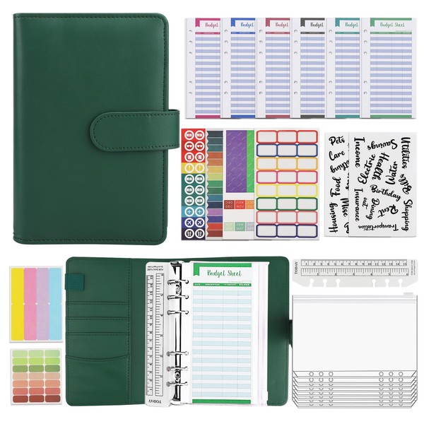 - COMPREHENSIVE SET The A6 budget planner ring binder comes with 12 budget cards, 8 zipper pockets, 2 word stickers, 4 multi function stickers, 1 ruler, and 3 colored label stickers - everything you need to manage your money