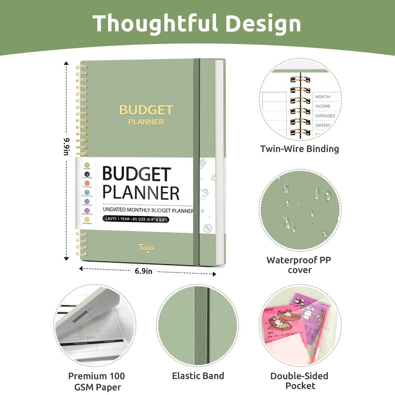 Budget Planner - Monthly Budget Book with Expense Tracker Notebook, Undated Bill Organizer & Finance Planner to Take Control of Your Money, 2025-2026 Account Book to Manage Your Finances-Green