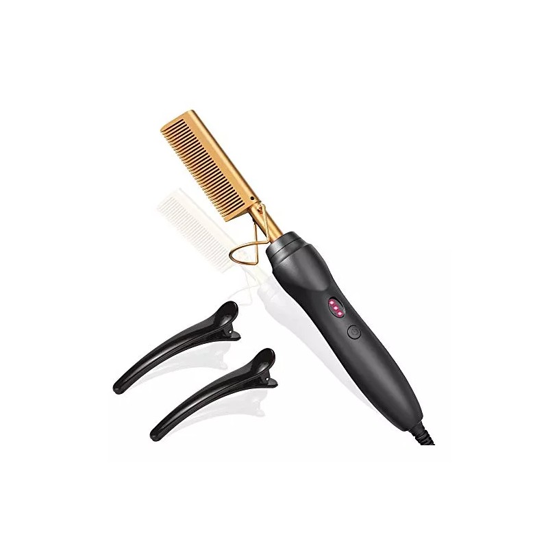 Alisador de pelo en caliente, peines prensados con calor, peine eléctrico de cerámica, rizador para cabello negro natural, pelucas de barba, regalo navideño,