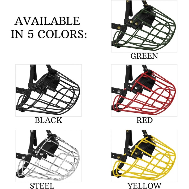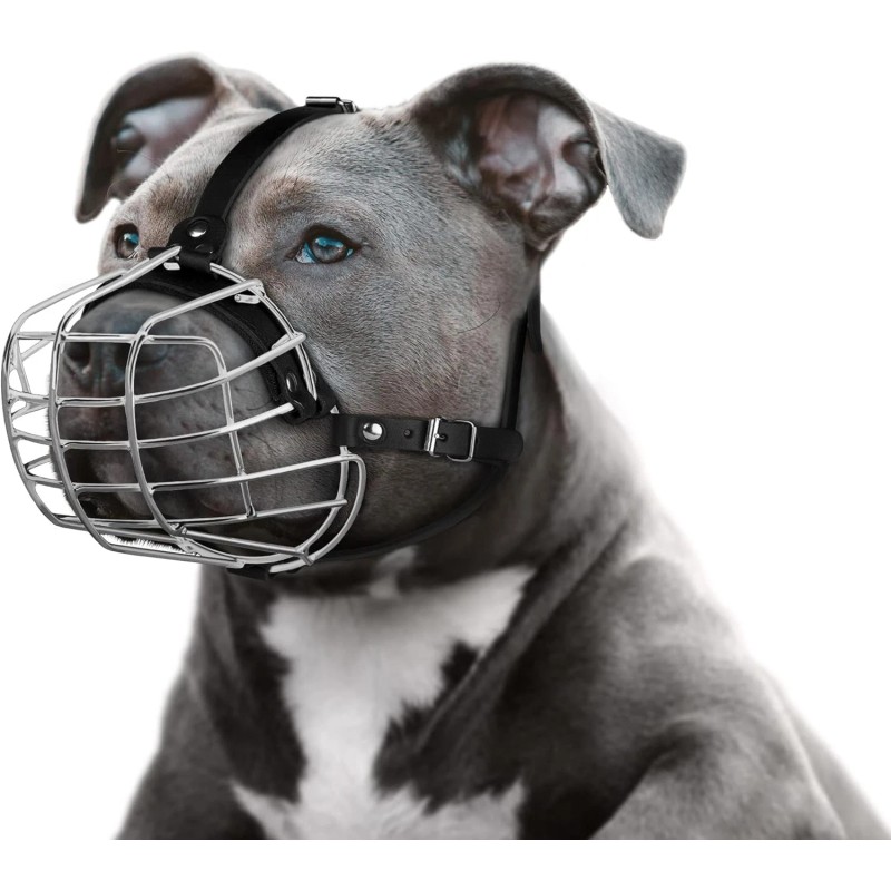 - This pit bull muzzle features a sturdy metal mask with a durable wire basket, providing excellent protection and control.