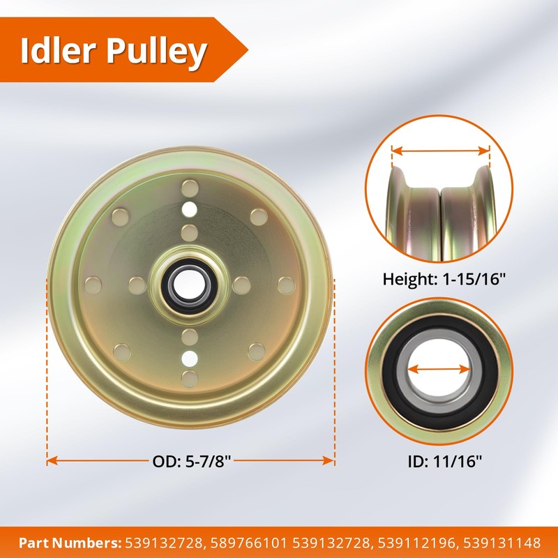 - 【Pulley Replaces OEM】One Pulley 539112196, 539131148, 539132728, 589766101, 589766102 and the other pulley 588586601, 196104, 197380, 532196104, 532197380
