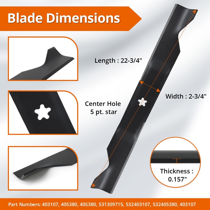 - 【Blades Replaces OEM】Replace for A riens 21546611, AYP 403107, 405380, 40S380, 531309715, 532403107, 532405380, 917532403107, 917532405380, 917777405380, Craftsman 33266, 403107, Hus qvarna 403107