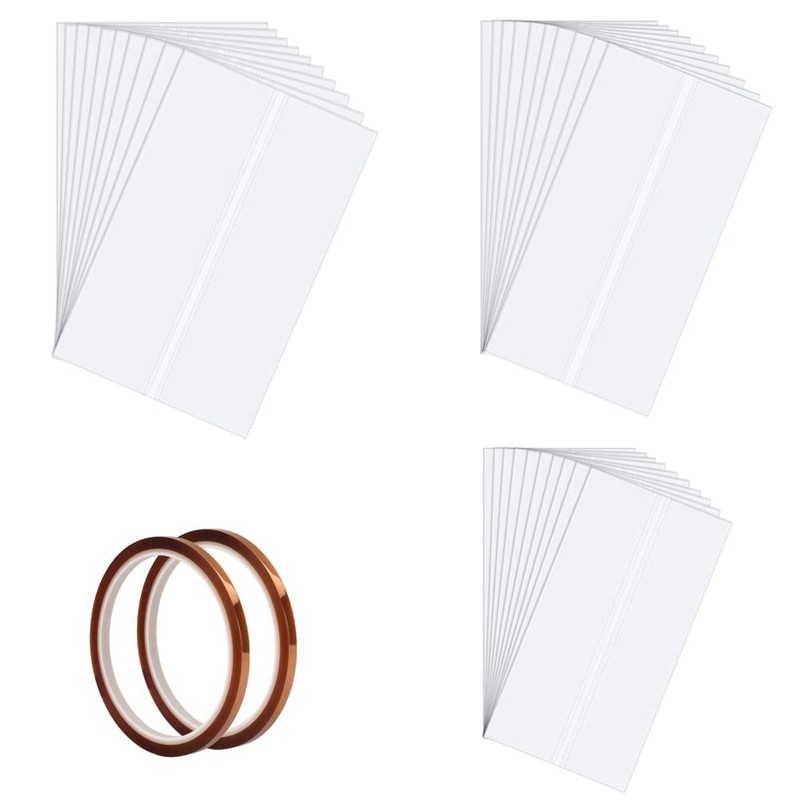 You will receive 30 sheets shrink film and 2 rolls of high temperature tape, 3 different sizes of 10 pieces; 3 sizes are 5 x 10 inches / 12.7 x 25.7 cm; 5.9 x 11.4 inches / 15 cm x 29 cm; 7 x 11.4 inches / 18 cm x 29 cm. 3 different sizes Can meet your needs to make different craft products.