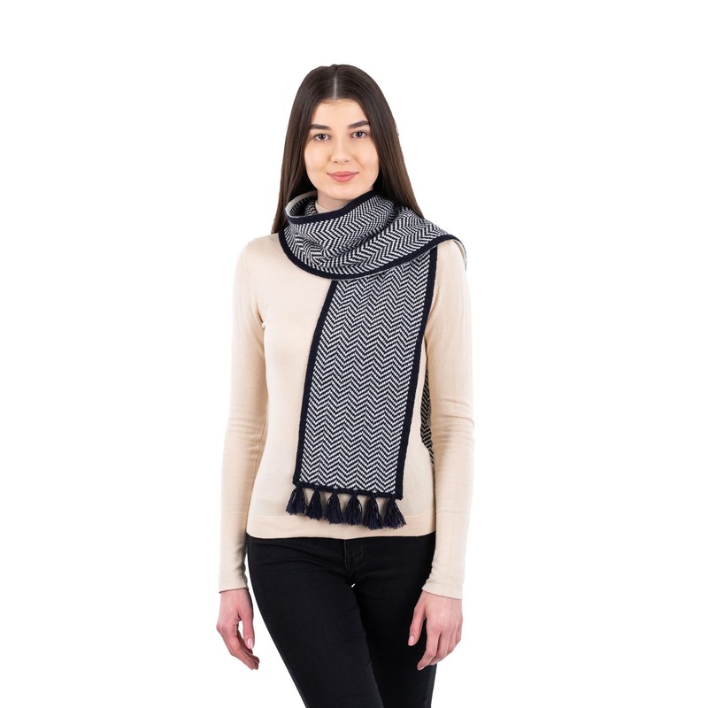 Bufanda de espiga para mujer, Irlanda 100% lana, Azul Marino, Talla única