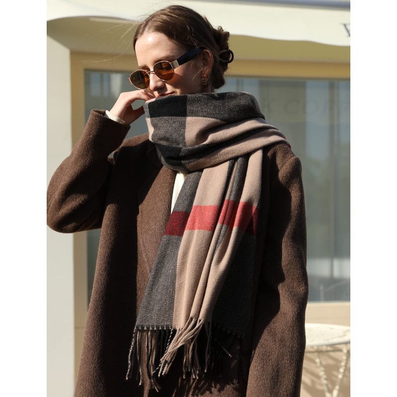 - Bufandas de gran tamaño: la longitud es de aproximadamente 75.6 pulgadas y el ancho es de 26.3 pulgadas. La bufanda de gran tamaño puede envolver completamente tu cuerpo y te mantendrá caliente todo el día. No solo se puede utilizar como un chal, manta, sino también como una alfombrilla de picnic, una envoltura mientras sales, práctica, cálida y elegante.