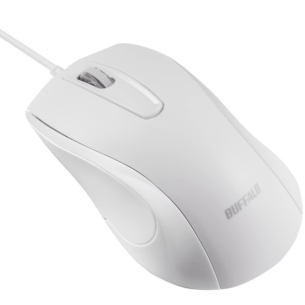 Buffalo 3 Button Wired BlueLED Heavy Duty Antibacterial Mouse White BSMBU115WH