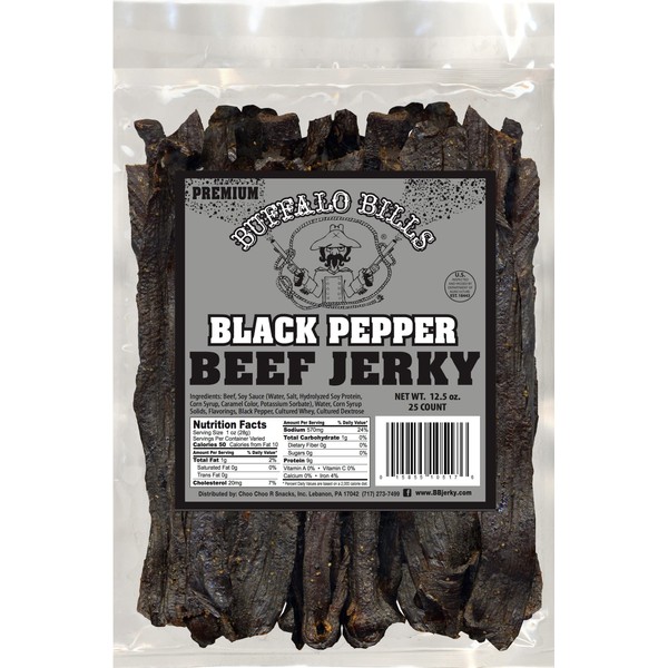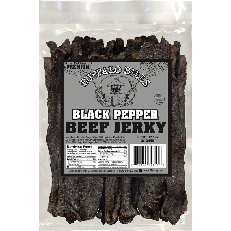 Buffalo Bills 12.5oz Premium Black Pepper Beef Jerky 7" Strips (25 smoked jerky strips per bag)
