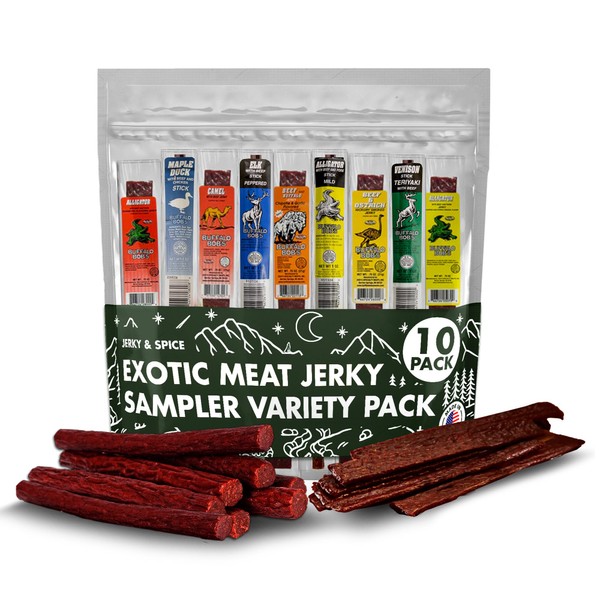 Buffalo Bob’s Wild Game Jerky (10-Pack), Exotic Meat Jerky Sampler Gift Pack, Premium Wild Game Meat Bouquet, Jerky Gifts for Men, Jerky Variety Pack